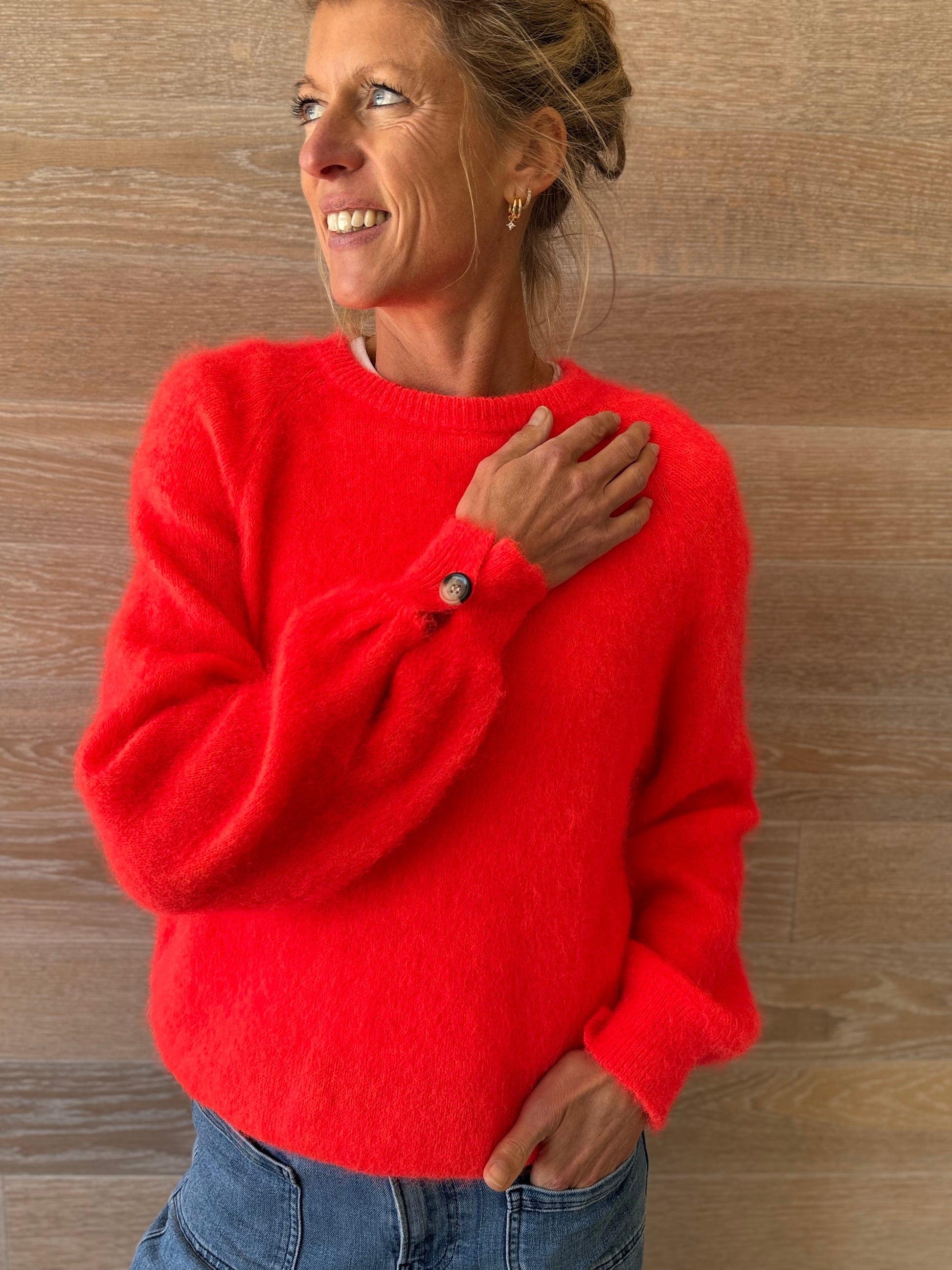 Mohair and merino are combined to make this gorgeous round-neck jumper. The oversized button cuff elevating it from the ordinary.